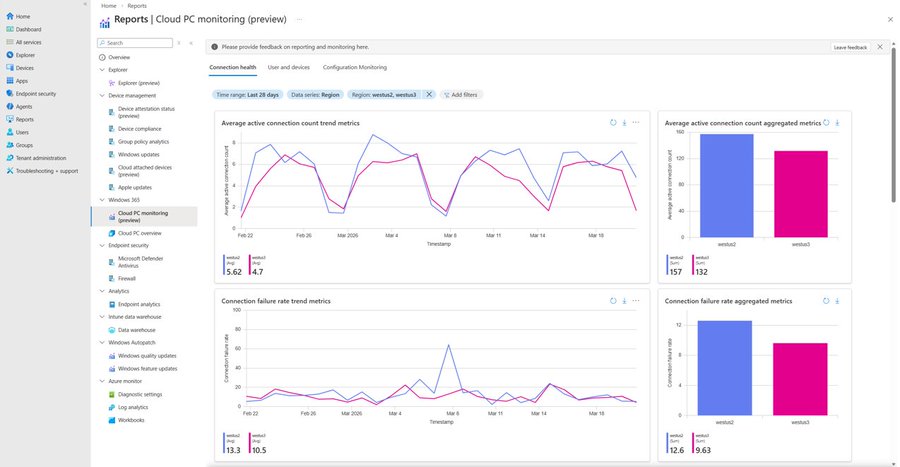 Microsoft has announced that a new Windows 365 monitoring and reporting platform is now in Public Preview. It brings together Cloud PC health, performance, and configuration data in the Intune admin center. The platform enables admins to spot problems and analyze trends directly, without exporting data or using other tools.