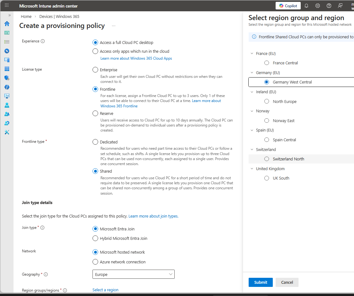 Microsoft has expanded Windows 365 Frontline in shared mode to the Germany West Central and Switzerland North regions. This expansion allows organizations in and around these areas to provision Cloud PCs closer to their users, improving performance through lower latency and supporting local data residency requirements.