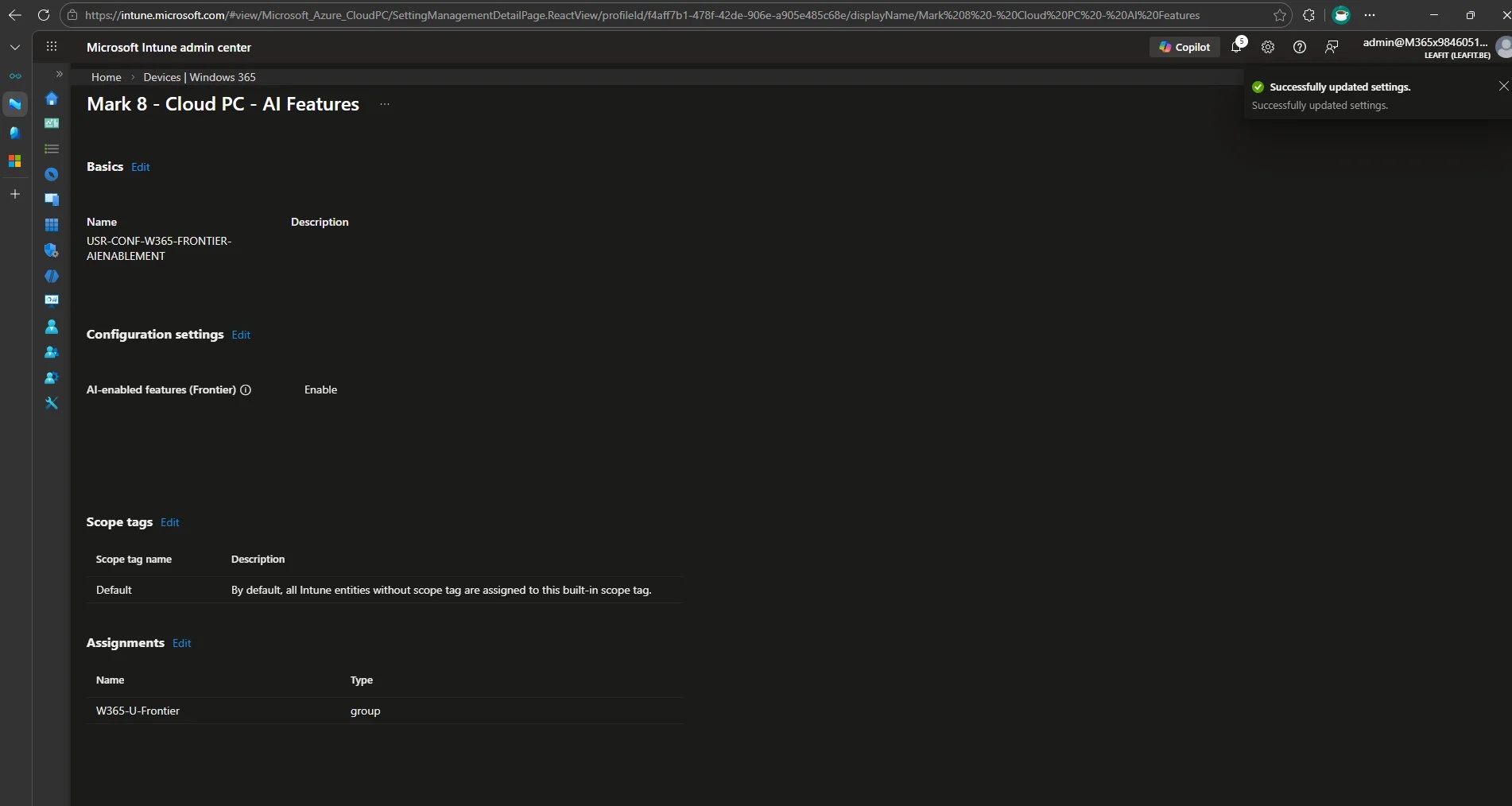 Enabling AI Frontier Capabilities on Windows 365 with Intune
